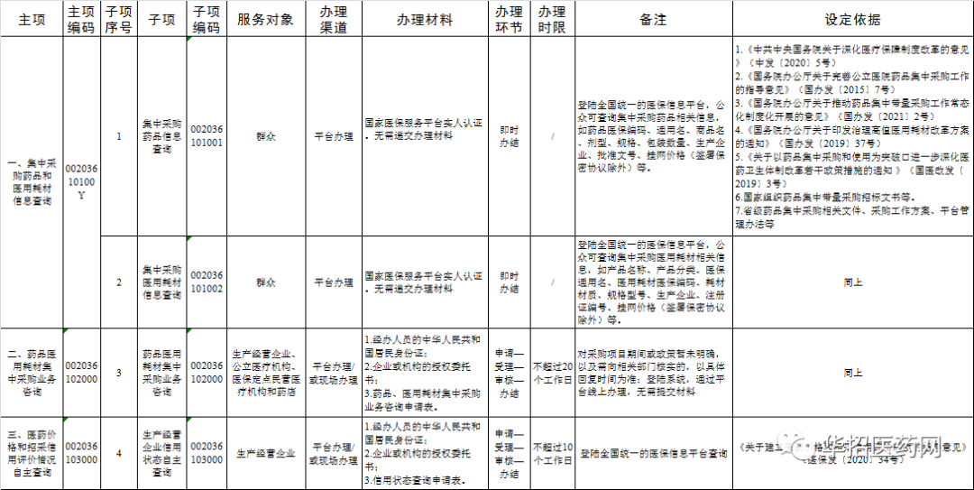 药品和医用耗材集中采购公共服务事项清单
